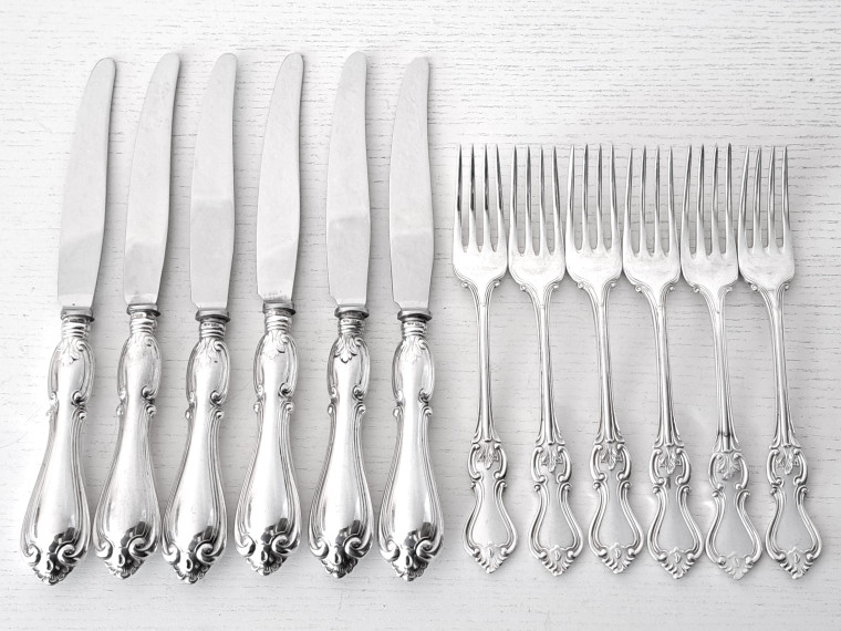 6 Smörgåsknivar(L18,5) o 6 Smörgåsgafflar(L14,2), CGH o GAB 1954-64, nytillverkas ej TOPPSKICK