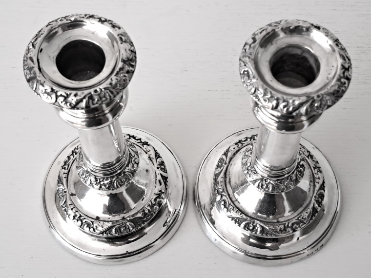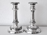 Högklassiga p rund välvd fot, slät avsmalnande stam, fot, nod o ljusmanschetter m akantusbård i relief, H18 vikt 1,1 kg inkl fylln TOPPSKICK