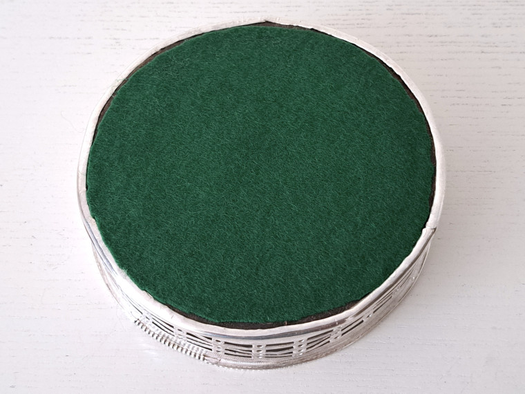 Mkt elegant, genombruten rak sarg m pärlbård p brun träbotten, obetydliga lagningar, D12,2 H3,2 SÄLLSYNT TILLFÄLLE