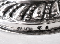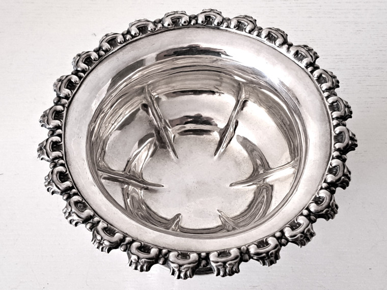 Mkt trevlig, halvklotformad p välvd fot m snedgodronnering, livet m vertikala reliefåsar, mynningen m reliefbård, D17,3 H10 vikt 200g TOPPSKICK