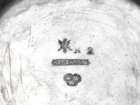 Högklassig, vidgande liv p välvd fot m svängda reliefåsar, livet m vackert graverad bladdekor i rokoko, mkt fin inv förg, H20,5 D15 vikt 400g TOPPSKICK