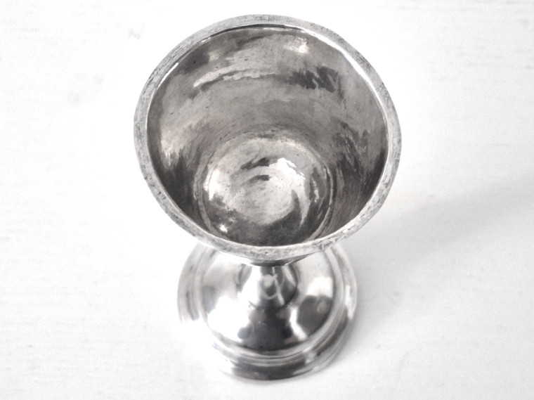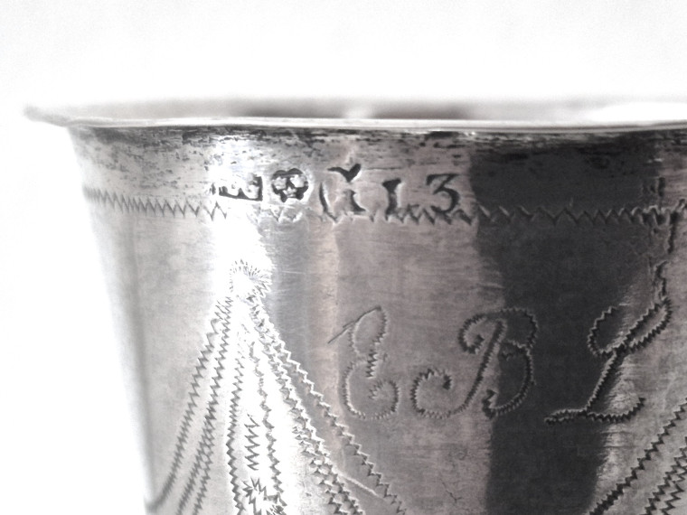 Mkt elegant p välvd rund fot o hög smal stam, U-formad cuppa m grav hängande festonger, mkt fint skick, H12,8 vikt 42g MKT LÅGT PRIS