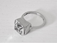 Mkt elegant m Bergkristall(1x1 cm) i klassisk Wiwenfattning, ringmått 16,8/53 (innerdiameter 16,8 mm, omkrets 53 mm) TOPPSKICK