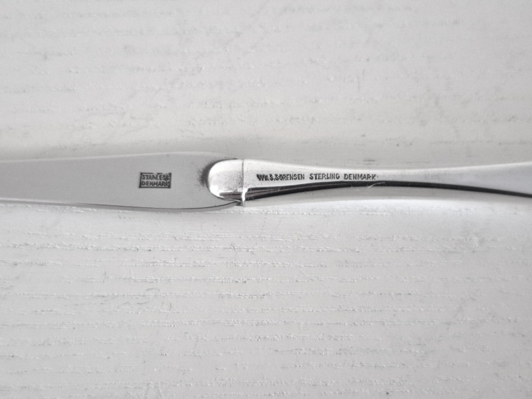 12 st, sällsynt vackra, slätt skålat skaft i silver, gaffeldelen i rostfritt stål, modell dansk Patricia, W&S Sörensen Köpenhamn c:a 1960, L19,6 NYSKICK, YTTERST SÄLLSYNT